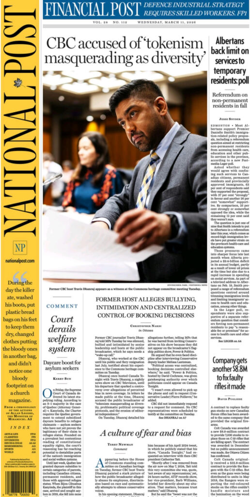 OTTAWA — Former CBC journalist Travis Dhanraj told MPs Tuesday he was silenced, bullied and intimidated by senior leadership and hosts at the public broadcaster, which he says needs a “wake-up call.”